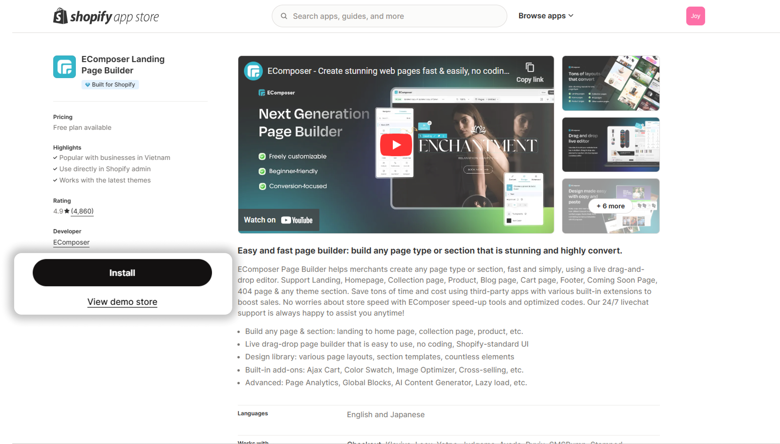 **Use EComposer Landing Page Builder with Joy Subscription**